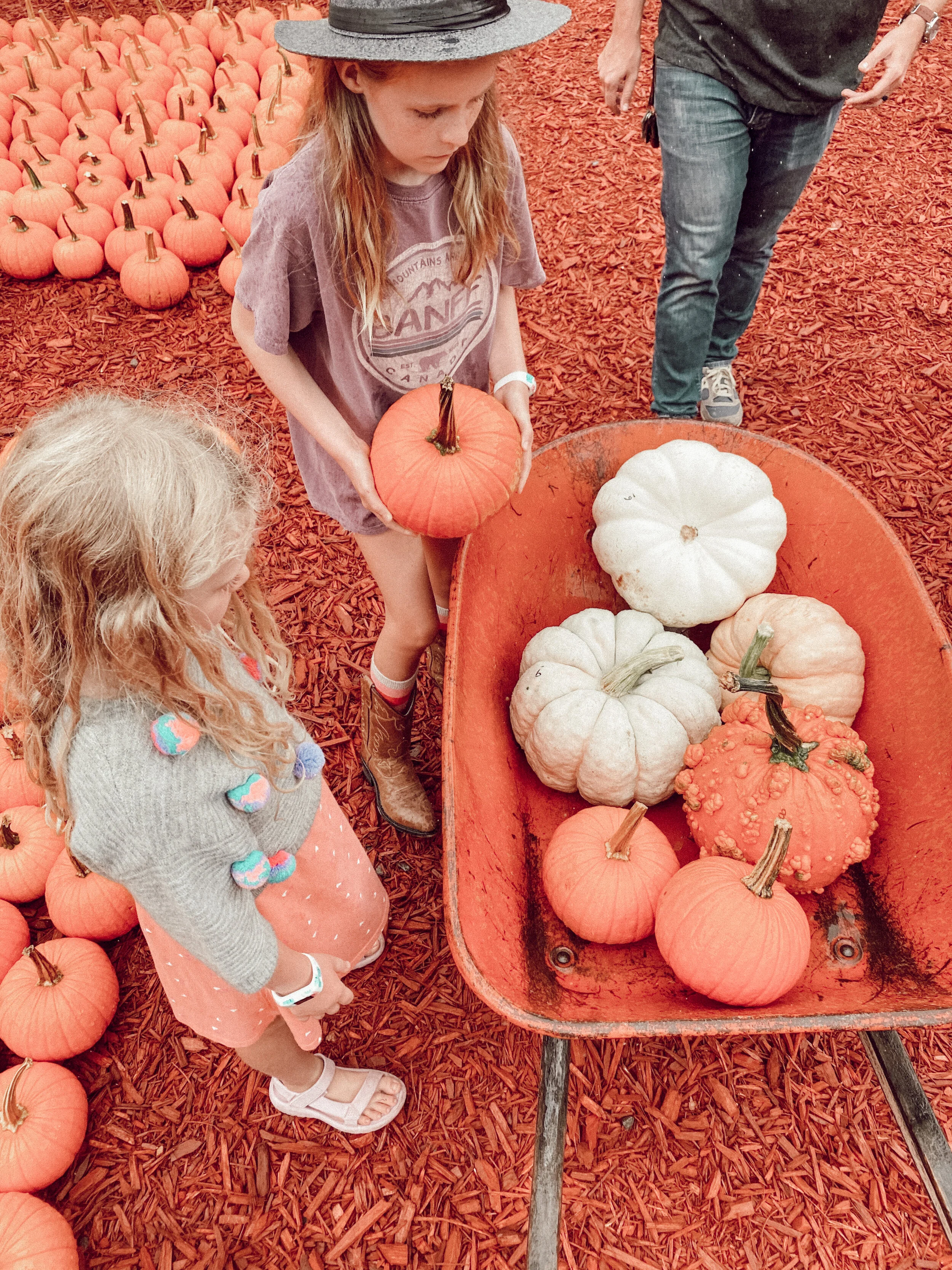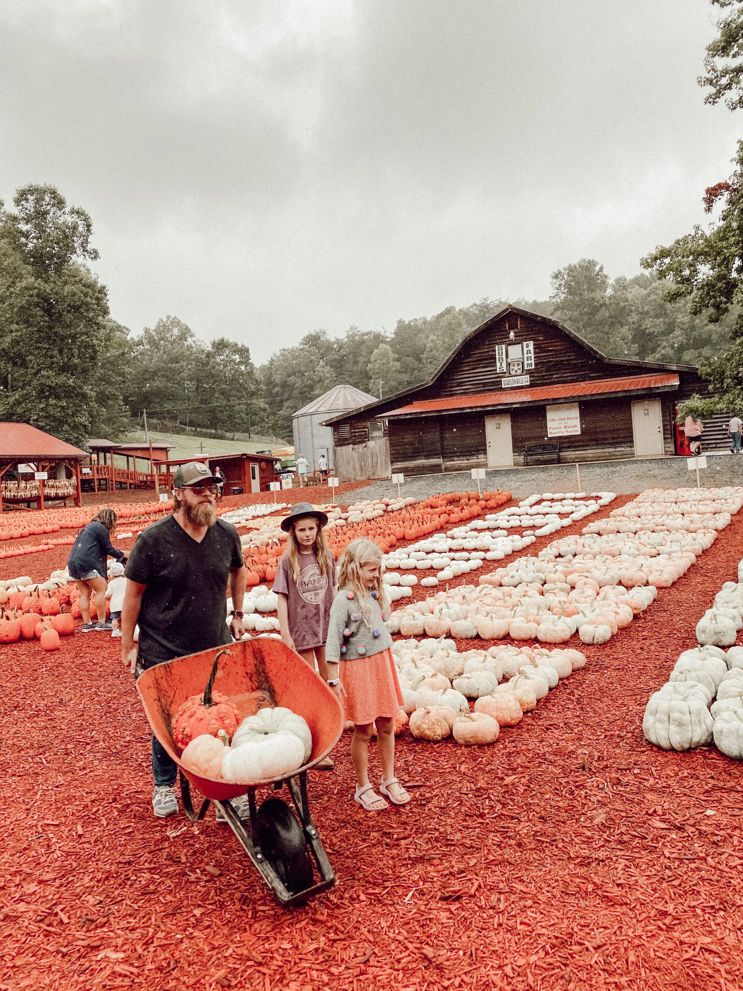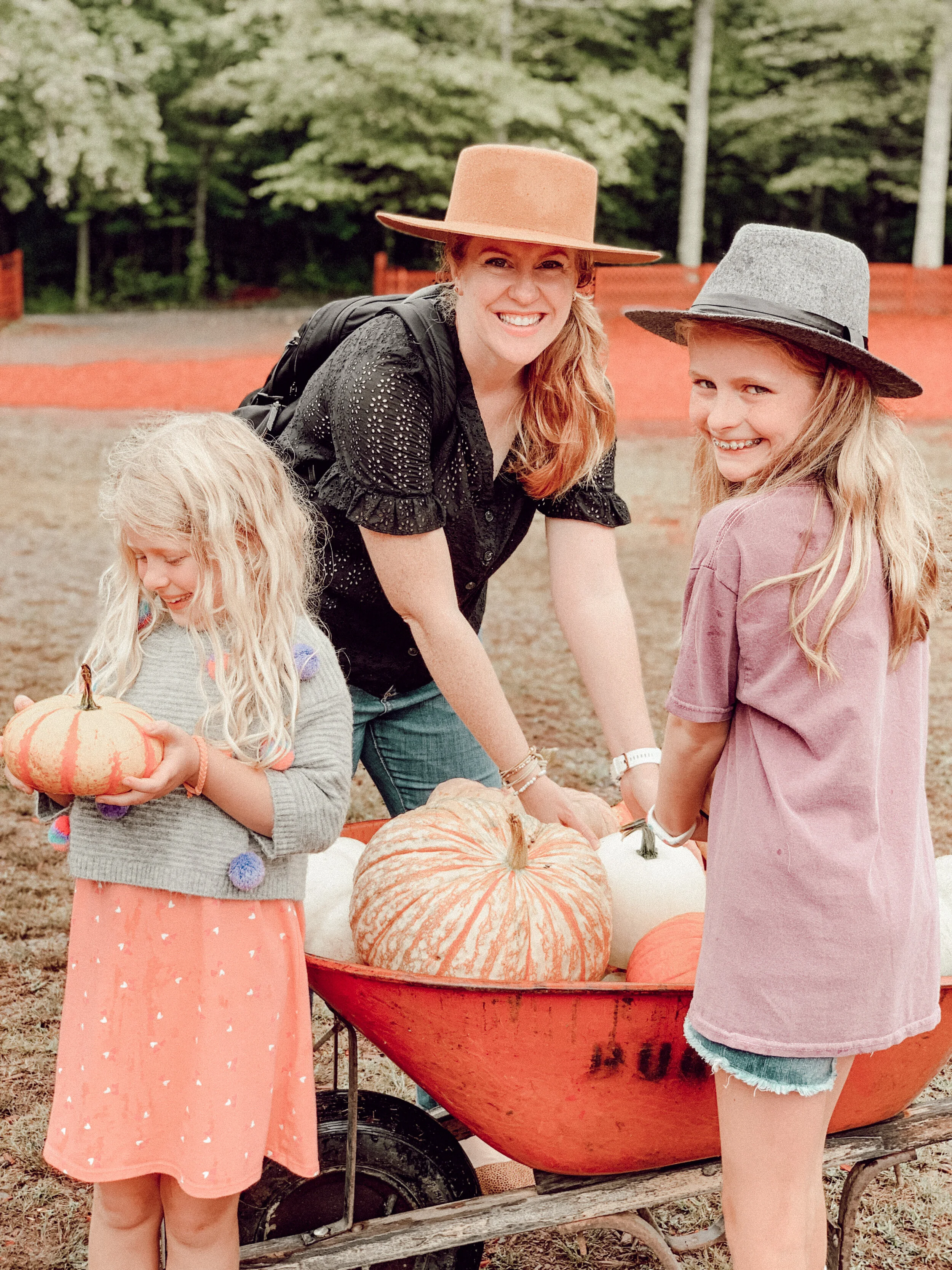 This weekend we took a spontaneous (and slightly early in the season - I know!) trip to Burt’s Pumpkin Farm! We lucked out because not only was it September (way less crowded than October) but it was also drizzly and dreamy which made for wide open pumpkin pickin’! We live about an hour away from this beloved farm but haven’t been in YEARS. Pretty sure a toddler meltdown did me in last time so it has clearly been a minute. Proof mamas that one day you will do fun fall things without tears. Ha!