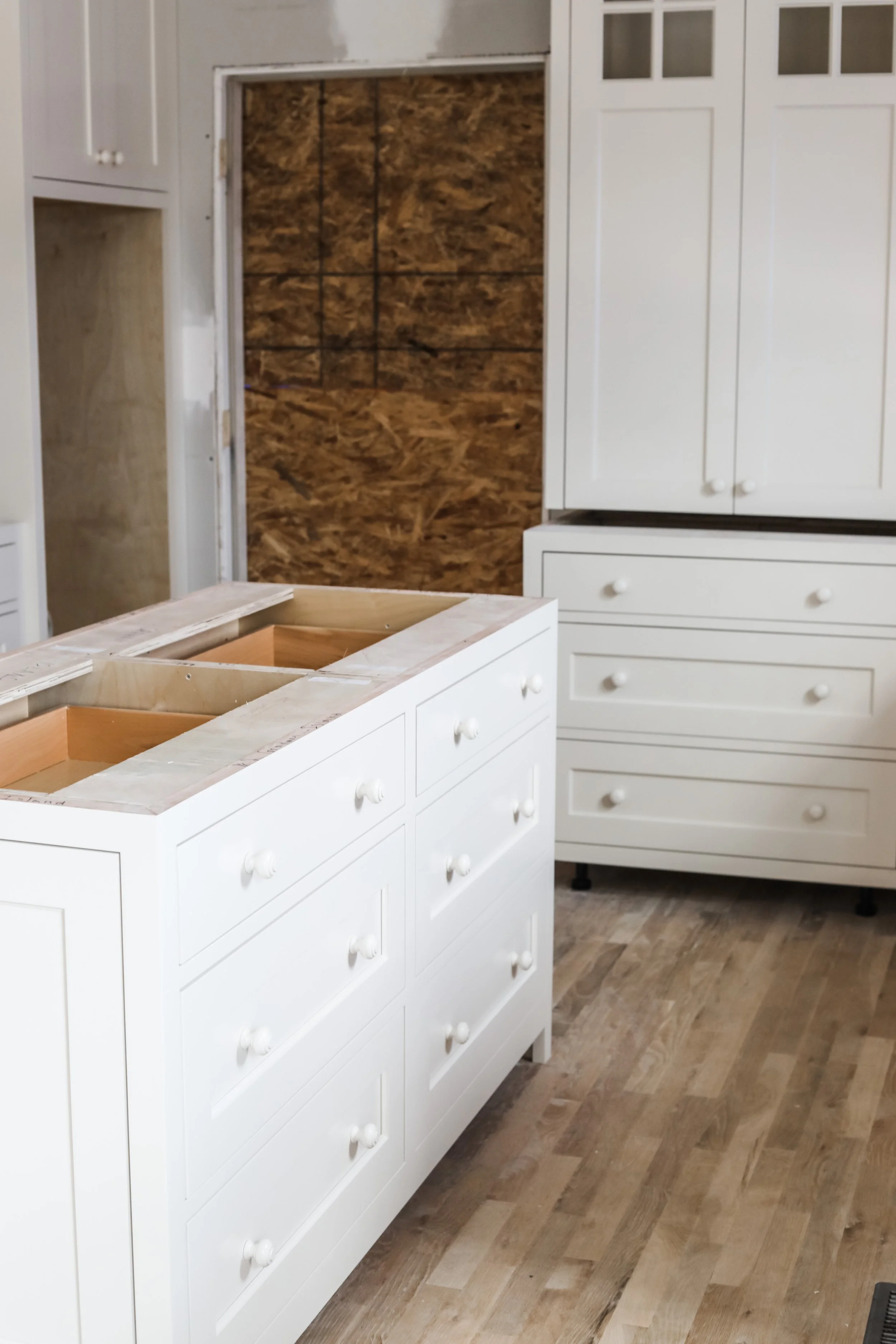 This is a small and cozy kitchen so storage is really important. The island has all drawers to make room for plates and bowls and whatever else we need.